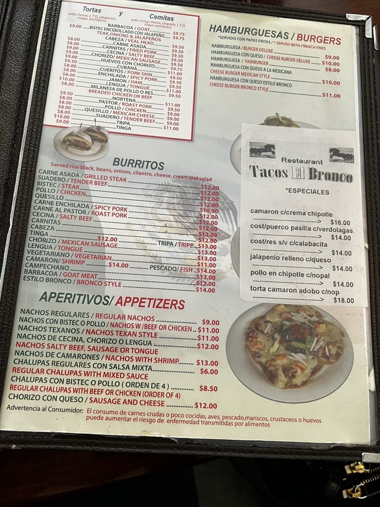 Tacos El Bronco, located in Brooklyn, NY, offers a diverse menu of authentic Mexican cuisine. From their renowned tacos like Pork Skin and Shrimp to Mexican Breakfast options like Eggs Ranchero Style, there's something for everyone to enjoy. Customers rave about the flavorful dishes and friendly staff, making it a standout spot for Mexican food in New York. The ambiance is casual and welcoming, with options for takeout and reservations. The restaurant also offers catering services, making it a great choice for group gatherings. Standout dishes like the Quesabirria w/ Consomme and Spicy Pork Tostada have left customers impressed and coming back for more. Overall, Tacos El Bronco provides a delightful dining experience with excellent food and a lively atmosphere.